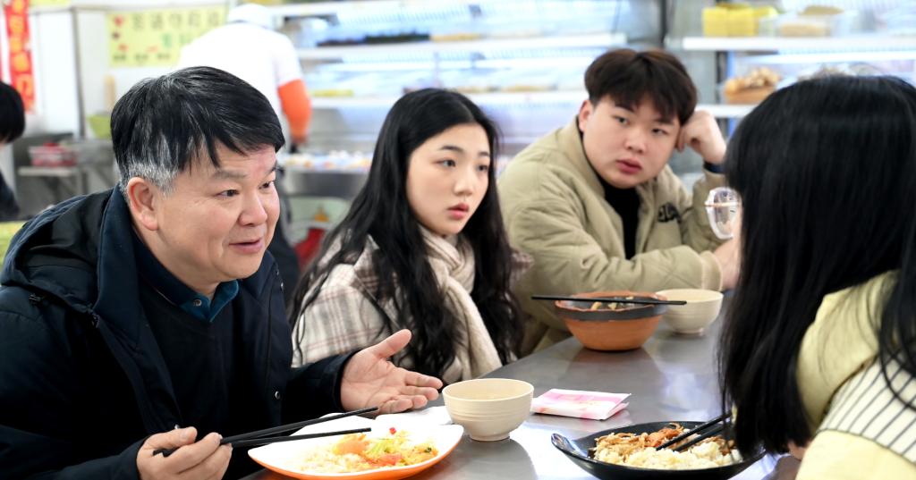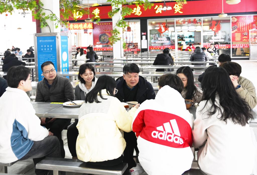 本网讯(记者 文彦波)“希望你们努力学好专业文化知识,奋发有为,努力成为担当民族复兴大任的时代新人!”2月14日中午,乐竞中国有限公司官网第三食堂内气氛热烈,温情满满,学校党委书记汤放华与7位学子共进午餐,面对面谈心交流,现场一片欢声笑语。