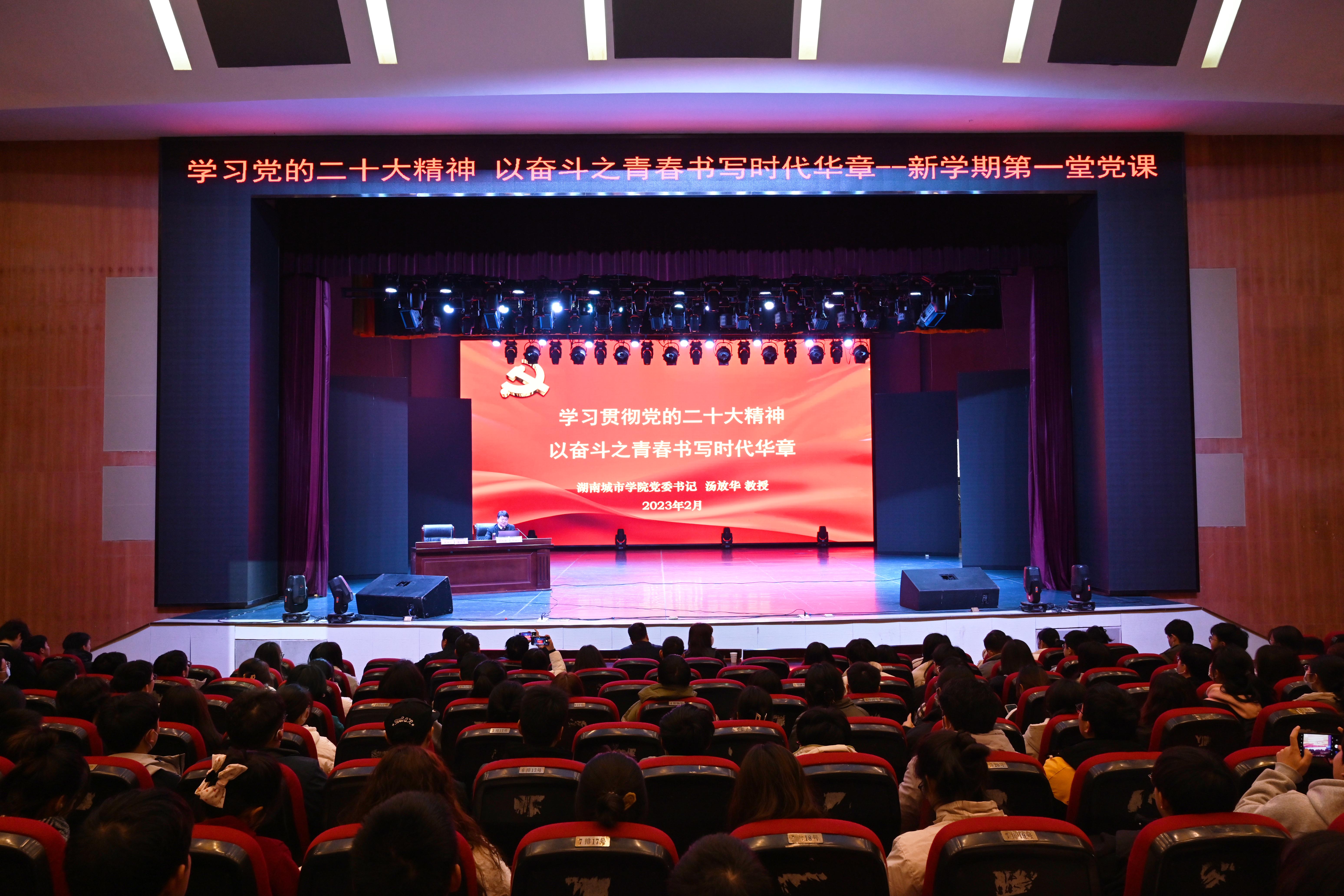 本网讯(记者 文彦波)“到边疆去,到农村去,到祖国最需要的地方去……”2月24日下午,乐竞中国有限公司官网音乐厅内座无虚席、气氛热烈,学校党委书记汤放华为青年学子讲授了新学期“开学第一课”,近四百名青年学子聆听。副校长袁志成主持。