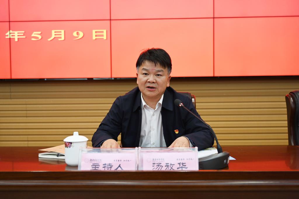汤放华表示,王瑰曙书记的报告主题鲜明、内容丰富、视野开阔,既有政治高度,又有思想深度及实践广度,对我们全面领会习近平总书记关于教育、科技、人才的重要论述,具有很强的针对性和指导性。王瑰曙书记在报告中体现出来的教育情怀令人钦佩,他对教育的深刻分析和阐述,为我们进一步办好高水平应用型大学提供了新的思路。希望大家全面把握主题教育的总要求,将理论学习、调查研究、推动发展、检视整改、建章立制结合起来,切实将主题教育学习成果转化为干事创业的不竭动力,以更加昂扬的姿态推动学校高质量发展再上新台阶。
