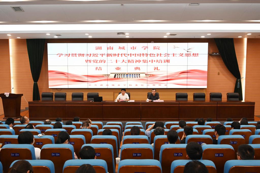 据悉,此次培训班历时近1个月,科级干部、系室中心主任、“三办”主任、组织员等1500余人次参加了学习。共组织了7场专题辅导报告,党委书记汤放华作了题为“以高质量发展推进中国式现代化”的报告,益阳市委党校常务副校长李振华作了题为《意识形态研判与应对》的报告,省科协党组书记、常务副主席王瑰曙作了题为《实施科教兴国战略,强化现代化建设人才支撑》的报告,校长何振作了题为《深入开展主题教育学习,做实学科建设指挥棒,切实推进高水平应用型大学建设新征程》的报告,校统战部常务副部长谌金中作了题为《公文写作能力》的报告,马克思主义学院院长夏建文作了题为《党的二十大精神总体解读》的报告,马克思主义学院党总支书记何军新作了题为《旗帜领航——深刻领悟习近平新时代中国特色社会主义思想的指导地位》的报告。期间,还安排了个人自学、分组讨论、学员交流分享等环节。