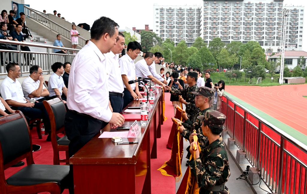 汇报表演结束后,副校长雷存喜作军训总结报告。他代表学校向参加军训的全体同学表示慰问,向参与本次军训工作的教官和老师们致以诚挚的感谢。雷存喜指出,本次军训各级领导高度重视,新生辅导员与教官积极互动,配合默契。尽管今年阴雨天气较长,又伴随着数日高温,但全体参训同学文明上进,发扬不怕苦不怕累的精神,圆满完成了军训任务,真正成为了品学兼修的有才青年,知行统一的有为青年。