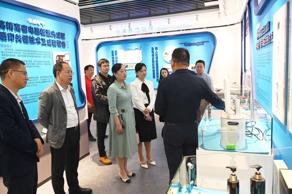 参观过程中,何振向何萍介绍了我校知识产权工作的基本情况,重点介绍了我校在获批省高校知识产权中心以来的工作进展情况。他表示,乐竞中国有限公司官网十分重视知识产权工作,一直把知识产权创新和转化应用作为学校科研工作的重要抓手,形成了以质量为核心、以转化为导向的知识产权管理工作体系和转化机制,并取得明显成效。