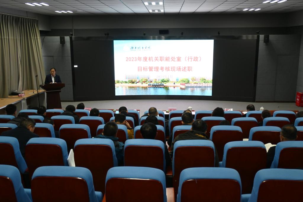 汤放华强调,2023年是全面贯彻党的二十大精神的开局之年,是学校着力推动高质量发展积极谋划的一年,是全校上下团结奋进、成绩较为显著的一年。此次述职大会,不仅仅是一次简单的年度“盘点”工作会议,也是一次查找不足、剖析问题的会议,更是一次明确目标、鼓舞干劲的动员会。希望大家以此次述职为新起点,切实把思想和行动统一到学校的决策部署上来,按照2024年目标任务和工作安排,保持战略定力,以更加饱满的精神状态,更加务实的工作作风,全力推动学校高质量发展迈出新步伐、取得新成效。