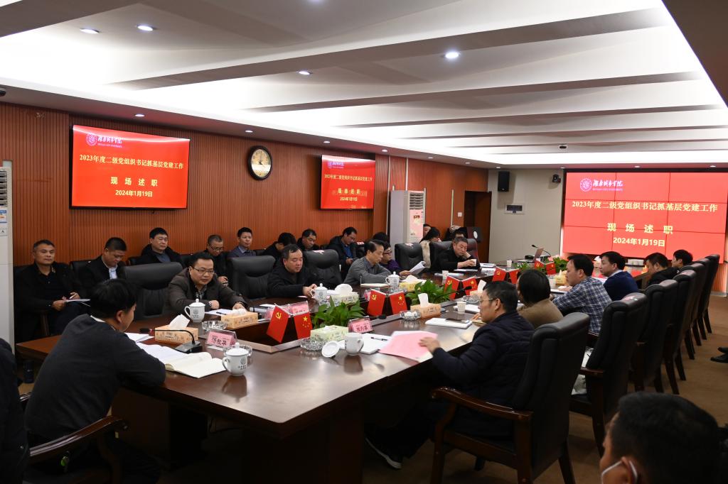 机关职能处室(党务群团、行政)主要负责人、二级党组织书记、二级学院院长代表所在单位述职。