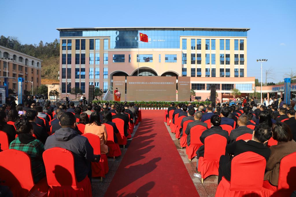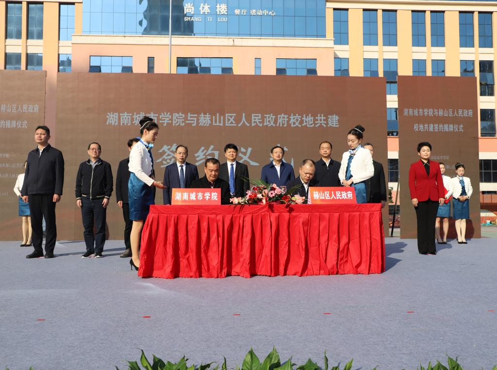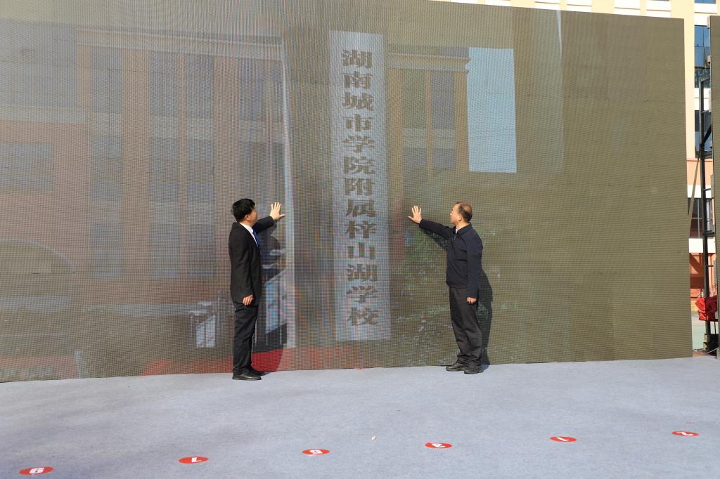仪式上,我校党委书记汤放华、赫山区区委书记周卫星为乐竞中国有限公司官网附属梓山湖学校揭牌;副校长雷存喜与赫山区副区长赵嘉喜签订校地共建框架协议书。