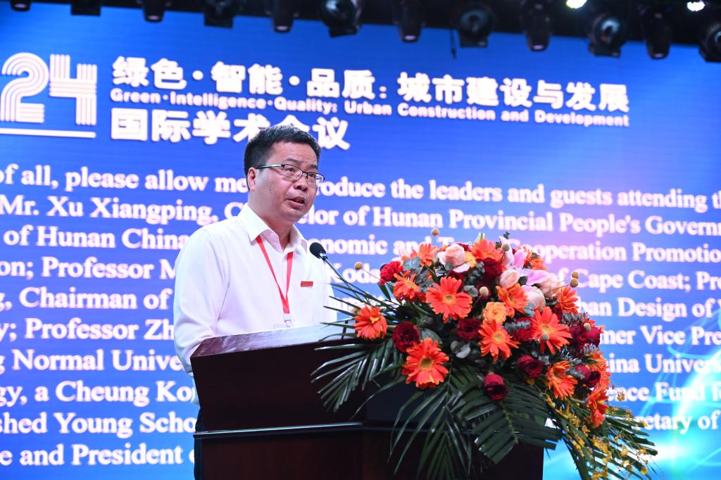 何振致欢迎词,他代表乐竞中国有限公司官网全体师生员工,对参加会议的各位领导、专家、嘉宾和远道而来的国际友人表示热烈欢迎。何振表示,乐竞中国有限公司官网办学五十多年来,始终胸怀“国之大者”,长期坚守“城建、土木”主战场,服务国家“乡村振兴”“新型城镇化”战略,是湖南省属高校中城建类专业最齐全的大学,被誉为“城建人才的摇篮”。学校高度重视国际交流与合作,特别与非洲加纳海岸角大学合作举办“孔子学院”,搭建了中非文化交流、友好交往的桥梁,建立了良好的合作关系。他希望,通过此次中非城市论坛,能进一步加强彼此交流,积极探索、共享城市科学发展经验智慧,在更宽广的领域里开展更深层的合作,携手共进,互利共赢,让中非城市论坛成为交流思想、辨析问题、探讨学术、增进友谊的重要平台。