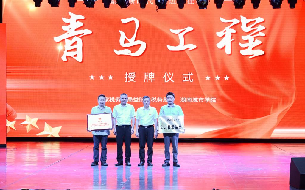 本网讯(通讯员 孔军) 5月23日上午,全省首家“青马工程”校税联合教育基地授牌仪式在我校音乐厅举行。副校长谭献良、徐姝,湖南省税务局党委委员、总会计师彭友山,益阳市政府副厅级干部喻国良出席仪式,益阳市税务系统、学校相关部门负责人,青年学生代表200余人参加活动。