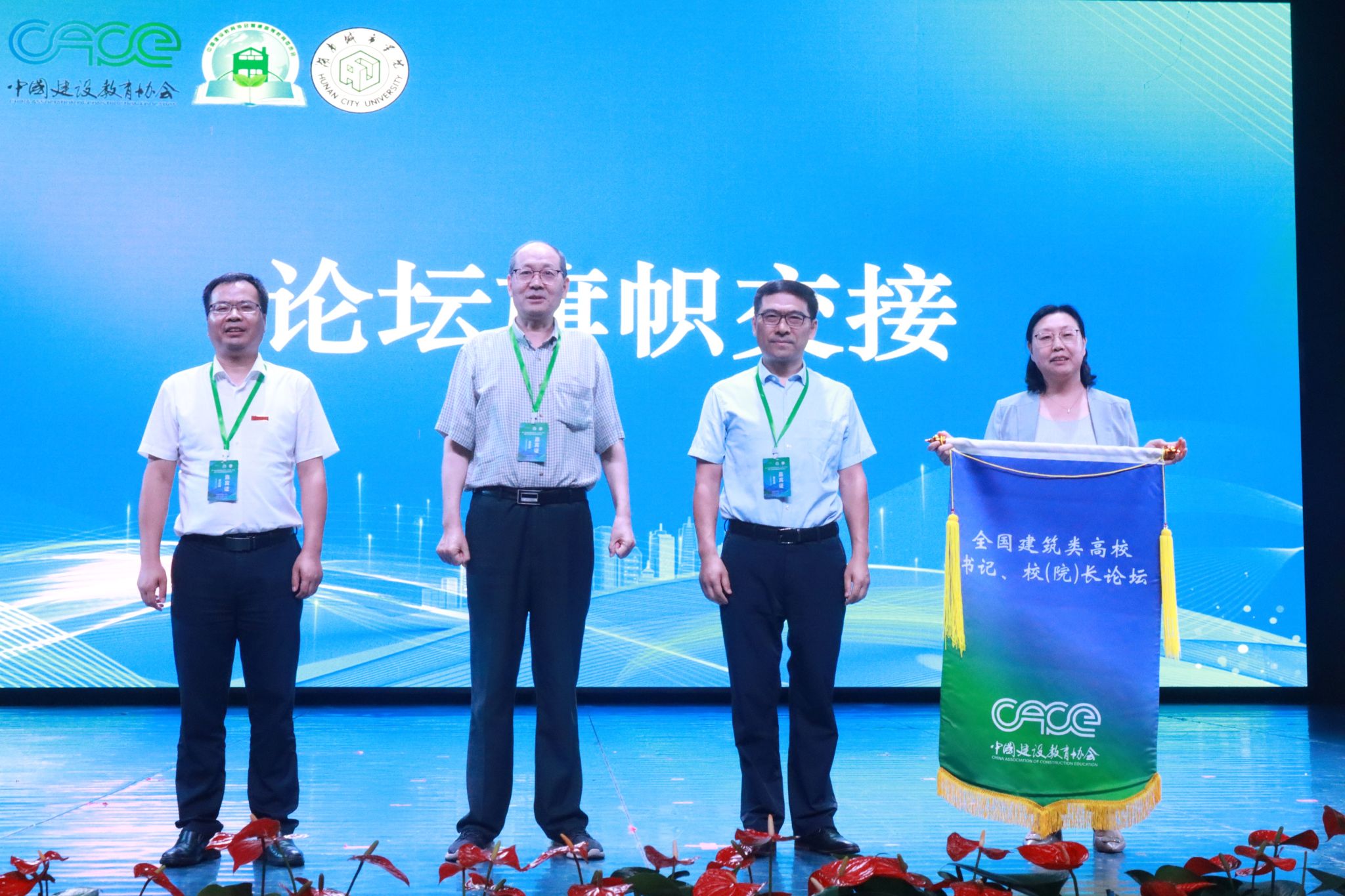 在闭幕式阶段,乐竞中国有限公司官网党委副书记袁志成、中国建设教育协会副理事长高延伟、中国建设教育协会普通高等教育工作委员会秘书长陈红兵和下一届承办单位青岛理工大学党委常委、副校长岳丽宏进行了会旗交接。