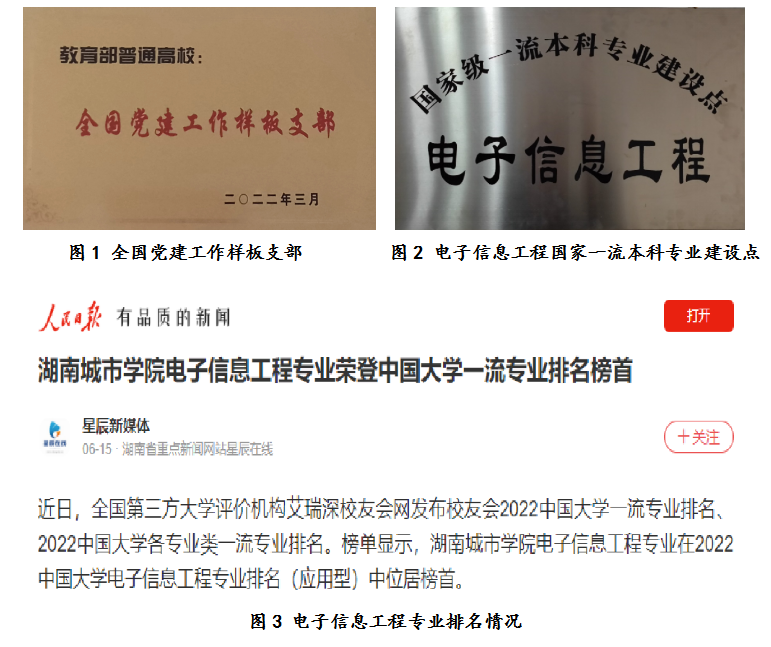 以习近平新时代中国特色社会主义思想为指导,坚持社会主义办学方向,全面贯彻落实党的教育方针。学院党委实施“一三四”党建工程,即:以“铸魂育人”为中心;以“对标入党誓词,检查政治忠诚;对标党员义务,检查履职尽责;对标时代先锋,检查自身差距”为主要内容开展“三对标三检查”党员常态化教育活动,引导党员做讲政治、讲作为、讲奉献的表率;以“做好课程思政、做强教学科研、做实人才培养、做深服务社会”四个重点为突破口,促进党建与业务工作深度融合,落实立德树人根本任务,有机融合“三全育人”和“五育并举”,推动学院高质量发展。近年来,学院获批全国党建工作样板支部1个、全国高校“双带头人”教师党支部书记“强国行”专项行动团队1个、全省教育系统先进基层党组织1个,入选湖南省高校教师党支部书记“双带头人标兵”2人、湖南省高校“青年教工党员示范岗”1人,有效助推了学院一流学科、专业建设和高质量人才培养。全国第三方大学评价机构艾瑞深校友会网发布校友会2022年中国大学一流专业排名,乐竞中国有限公司官网电子信息工程专业在排名(应用型)中位居榜首。