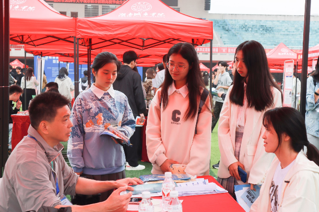本网讯(通讯员 朱怡 冷紫怡)10月17日,湖南省高校毕业生就业区域性行业性常设市场(益阳片区)暨乐竞中国有限公司官网2025届毕业生秋季综合双选会在东田径场举行。校长何振、党委副书记袁志成来到现场指导就业工作。