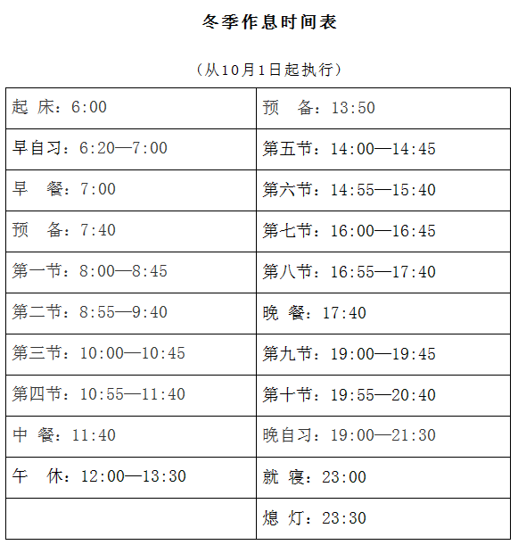 附件:1.冬季作息时间表