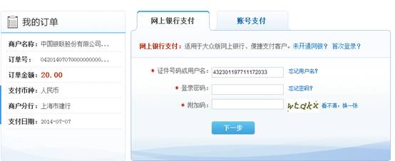 6. 点击“立即支付”并“确认”后将跳转至银行支付页面,请同学们核对页面左侧的商户名称应为“乐竞中国有限公司官网”或者为“中国银联股份有限公司”,核对完成后,请按提示选择支付方式完成缴费。