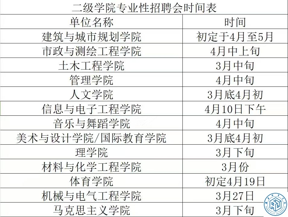 自2025年3月3日开始,我校将陆续举办二级学院专业性招聘会,具体时间安排如下。如有更改,可关注“乐竞中国有限公司官网就业信息网”信息。