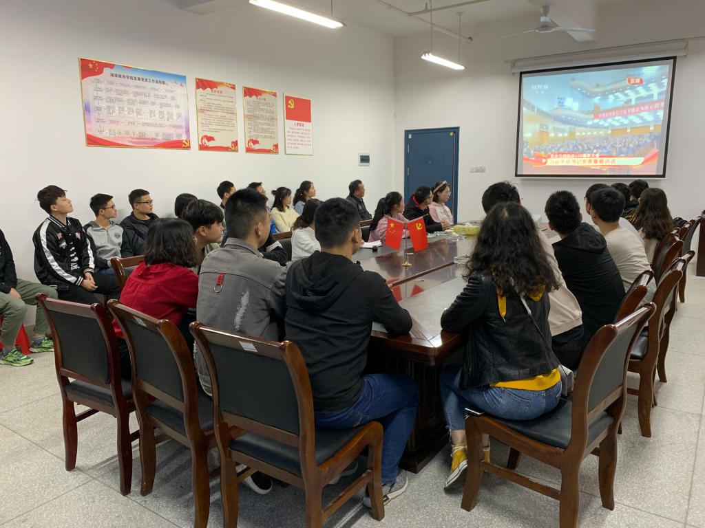 2019年4月30日上午10时30分,机械与电气工程学院组织观看“纪念五四运动100周年的”直播的活动。机械与电气工程学院党总支副书记刘辉老师、院团委书记段虹伶老师及院部分干部和学生。