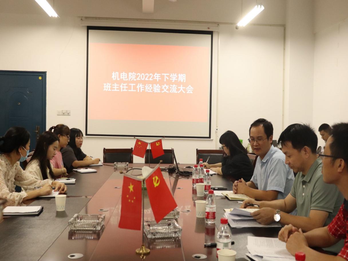 2022929日下午4机械与电气工程学院在土木楼313会议室举行了班主任工作经验交流大会会议旨在通过工作经验分享为班主任之间提供一个互相借鉴相互学习的交流平台从而进一步推动学院三全育人工作实现立德树人根本任务参加此次会议的领导老师有学校学生工作部部长余洪机械与电气工程学院党委书记张光富党委副书记易志明全体辅导员和班主任会议由党委副书记易志明主持