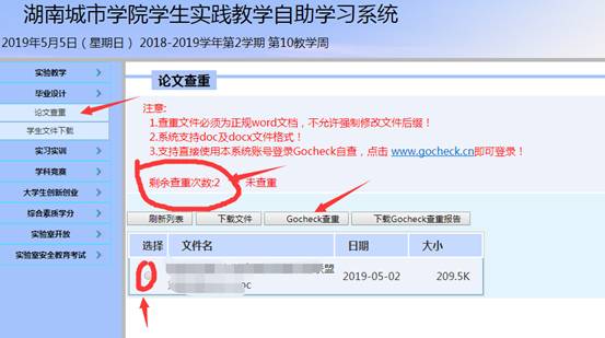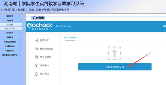 我校毕业综合训练管理系统目前已完成与gocheck论文检测系统的对接,学生在上传终稿后且经指导教师在系统中允许后可对终稿正文进行自测。学生可自行免费检测2次,免费查重次数用完后,需要在gocheck检测系统里充值进行查重。具体操作如下: