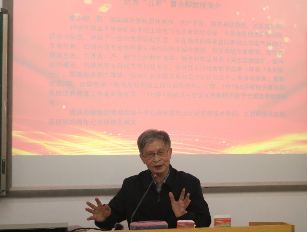 曹永卿,城市规划教授,注册规划师。1991年5月被授予建设部系统优秀教育工作者荣誉称号;1998年9月被评为全国优秀教师并授予全国优秀教师称号。退休后继续受骋乐竞中国有限公司官网规划建筑设计研究院技术顾问,主助新技术应用,获建院30周年纪念特殊贡献奖。曹永卿教授以“不忘初心,砥砺前行-我的教书育人”为题分享了个人成长奋斗的经历,勉励青年学生脚踏实地,努力奋斗,实现人生价值。