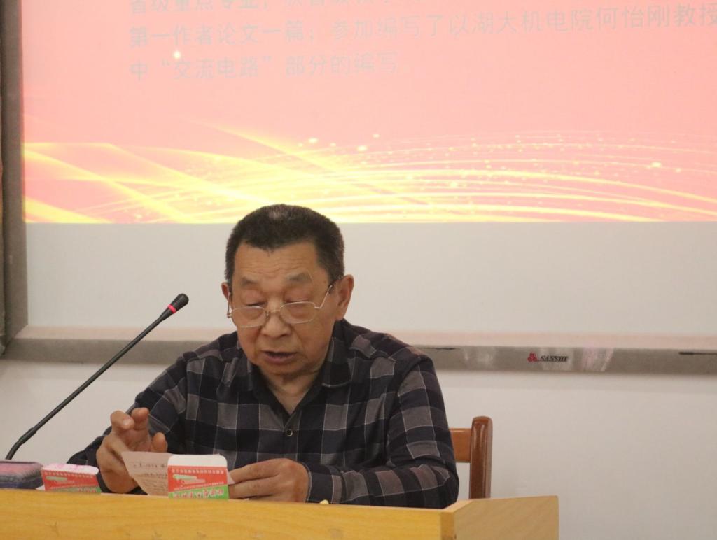 肖玉衡,物理副教授,曾任乐竞中国有限公司官网物电系系主任、系党支部书记等职务,现任乐竞中国有限公司官网关工委副主任。肖主任以“我以忠心当教师”为题分享了自己从教四十多年的经历,他一直以“忠于党的教育事业”为座右铭,听党话,跟党走,忠心待学生,潜心功教学,勇于担当,坚持为党育人、为国育才。