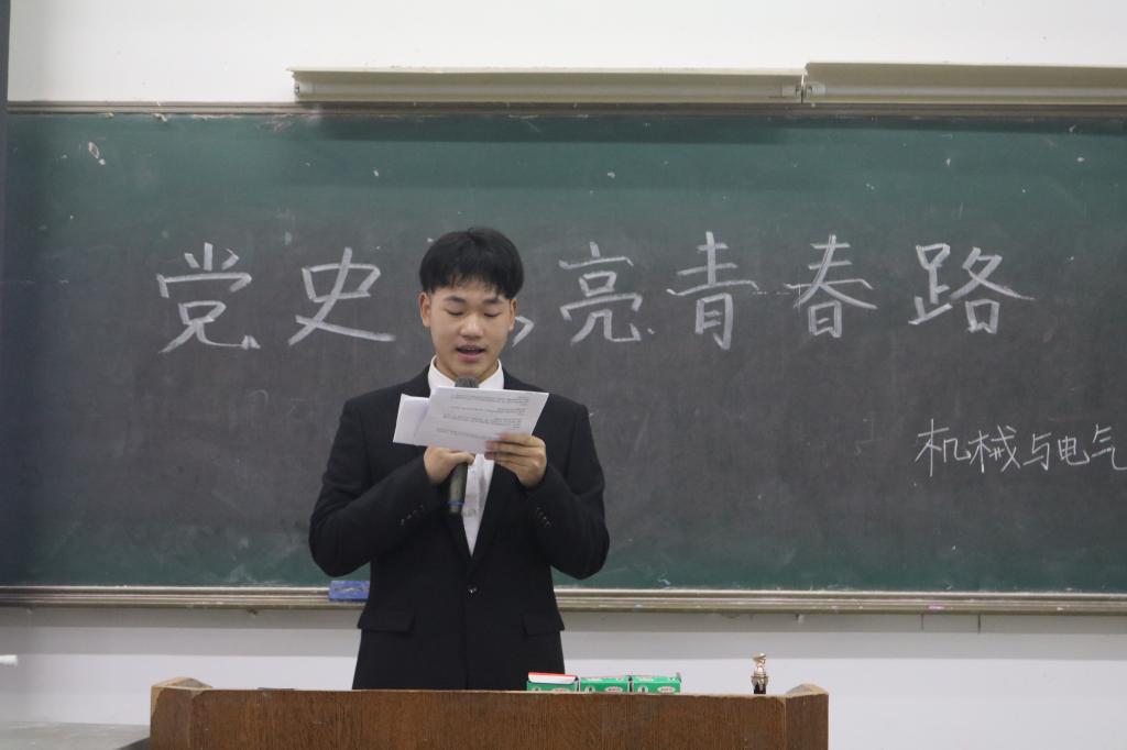 风雨百年,青史可鉴。为庆祝中国共产党成立100周年,机械与电气工程学院于4月23日下午6:30在一教204举行“党史照亮青春路”主题演讲比赛。本次比赛的评委有机械与电气工程学院学工办主任、团委书记周文萍老师,院执行主席赵益民、院团委副书记李沁璇、徐煜、乐竞中国有限公司官网校学生会综合事务部文怡馨。