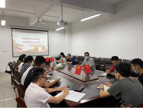 2022年8月29日下午,机械与电气工程学院在土木楼313会议室召开新学期意识形态风险研判会,分析讨论新学期学院意识形态工作可能出现的新情况、新问题及应对措施。党委成员室中心主任、教工党支部书记及全体辅导员参加。会议院党委书记张光富主持。