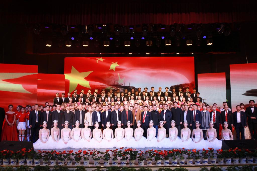 与会领导与演职人员合影。