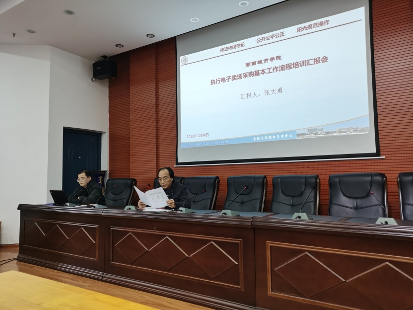 2020年12月04日15:00时,在土木楼828学术报告厅,采购与招投标管理中心主持召开“学校执行电子卖场采购工作流程操作”培训会。采购与招投标管理中心主任冷云飞组织学习了《乐竞中国有限公司官网关于执行政府采购电子卖场的有关规定》(湘城院发[2020]66号)及相关要求和注意事项。培训会上,张大勇介绍了政府采购电子卖场的具体操作流程,王胜斌负责发放了全校各采购经办人和审核人岗位账号密码及负责会务事宜。